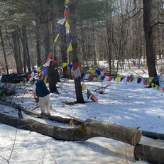 While continuing the projects at Orgyen Cho Dzong Retreat during the winter, Lopon Lulu noticed that an area in front of the second entrance to the main temple can be used as a space for a new parking lot. After discussing the idea with Dungsey Namgay Rimpoche, the project was decided to be moved forward. Once the weather got better, on March 6th, Lopon Lulu started to clear the area, remove dead trees and prayer flags: