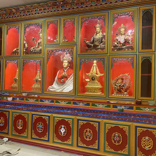 In mid August of 2020, Rinpoche with the help of Lama Pema requested a master carpenter, Sonam Wangdu, and his uncle, Jamyang Sangpo, to come and have a look at the shrine for a redesign. (This is Rinpoche's third personal project after completing his late father and sister's wishes) After a while, they reached an agreement for the altar that would be finished in one month time. The shrine would cover 16 feet from wall to wall and 12 feet from floor to the ceiling. According to the rough sketch, the new shrine would look like the pictures depicted below. Regarding this project, Rinpoche has reached out for contribution to the public on GoFundMe and through our special project account on PayPal. Within 24 hours we were able to raise the money with the generous donation of $30,000 from H.H Kyabje Dudjom Rinpoche's Semos: Semo Chimmi la and Semo Tsering la as well as nearly $7,000 from 40 donators.
